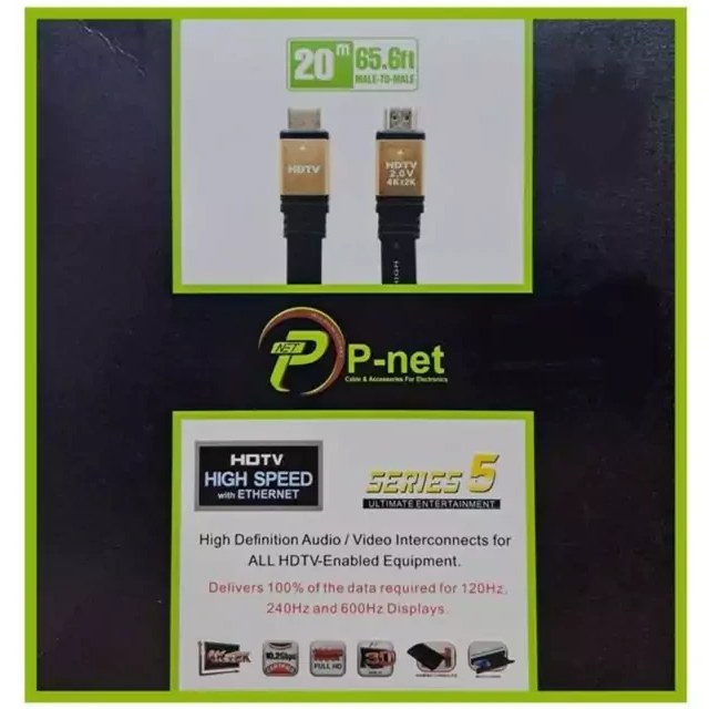 کابل ver2.0 HDMI مدل HDTV پی نت P-net تخت 4k به طول15متر با پک مقوایی