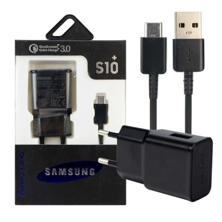 شارژر S10 پلاس فست سامسونگ از کلگی شارژر دیواری و یک کابل Type-C یک متری تشکیل شده است. جریان خروجی از این شارژر در صورت 9 ولت 1٫67 آمپر و 5 ولت 2 آمپر میباشد و برای گوشی های فست 15 وات و 10 وات که پورت شارژ Type-C دارند مناسب است. کابل شارژ قابلیت دیتا دارد و با اتصال به پورت USB کامپیوتر میتوان برای سینک و انتقال داده از آن استفاده کرد. دوشاخه کلگی هم 2 پین معمولی است و نیازی به استفاده از تبدیل برق ندارد.