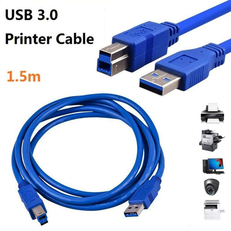 این کابل پرینتر دارای 1.5 متر طول و کانکتور نری USB 3.0 Type-B در یک سر و کانکتور نری USB 3.0 Type-A در سر دیگر خود بوده و در بازار لوازم جانبی کامپیوتر و پرینتر به فروش می رسد. از این کابل برای اتصال دستگاه هایی مانند چاپگر و اسکنر به کامپیوتر و لپ تاپ جهت انتقال اطلاعات از سیستم برای چاپ یا اسکن استفاده می کنند. این محصول دارای روکش PVC بوده و سرعت انتقال اطلاعات توسط آن برابر با 5 گیگابایت بر ثانیه می باشد.