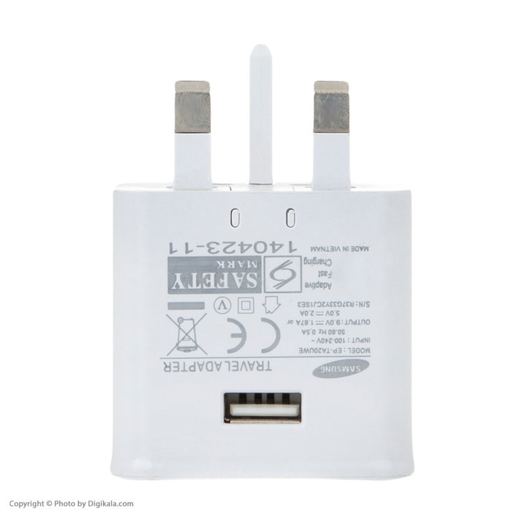 شارژر دیواری مدل EP-TA20UWE برای شارژ باتری انواع گوشیهای موبایل، دوربین دیجیتال و دیگر لوازم از این قبیل مناسب خواهد بود. در این شارژر دیواری یک سه شاخه برق قرار گرفته که از آن برای اتصال شارژر به پریز برق استفاده میشود. البته توجه داشته باشید که این سه شاخه با پریز برق در ایران سازگاری ندارد و شما برای استفاده از آن باید از یک تبدیل 3 به 2 استفاده کنید. پس از استفاده از این تبدیل، شما میتوانید شارژر را بهطور مستقیم به پریز برق متصل کرده و دستگاه مورد نظر خود را با کمک یک کابل USB به آن متصل کنید. ولتاژ ورودی در این شارژر 110 تا 240 ولت و ولتاژ خروجی در آن 5 ولت است. همچنین با توجه به میزان جریان خروجی 2 آمپر و بالاتر، این شارژر قابلیت شارژ تبلت و دستگاههای دیگر را دارد. امکان شارژ کردن سریعتر موبایلگوشی موبایل از ویژگیهای دیگر این محصول هستند که میتوان به آنها اشاره کرد. گفتنی است، وزن این شارژر 36 گرم بوده و ابعاد آن بهصورتی طراحی شده که بهسادگی قابل حمل باشد.
