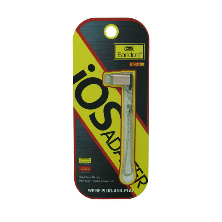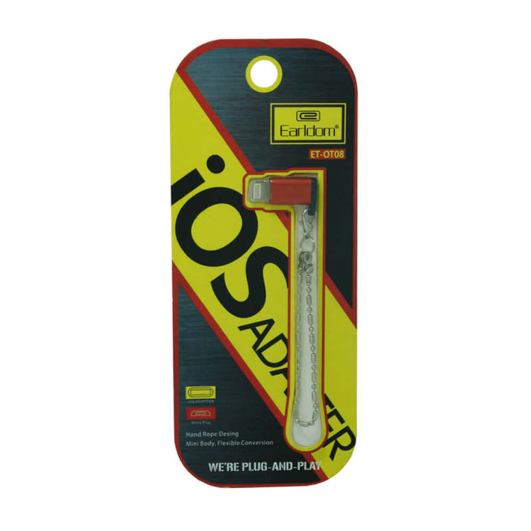 مبدل microUSB به Lightning ارلدام مدل ET-OT08 سازگار با تمامی دستگاه های ios ، از جنس بدنه فلزی با استحکام بالا تهیه شده و دارای بند آویز فلزی است که هم باعث زیباتر شدن این مبدل و همچنین باعث میشود بتوانید این مبدل را از هرجایی مثل کیف پول ، جاکلیدی ، کوله پشتی و ... آویزان کنید .