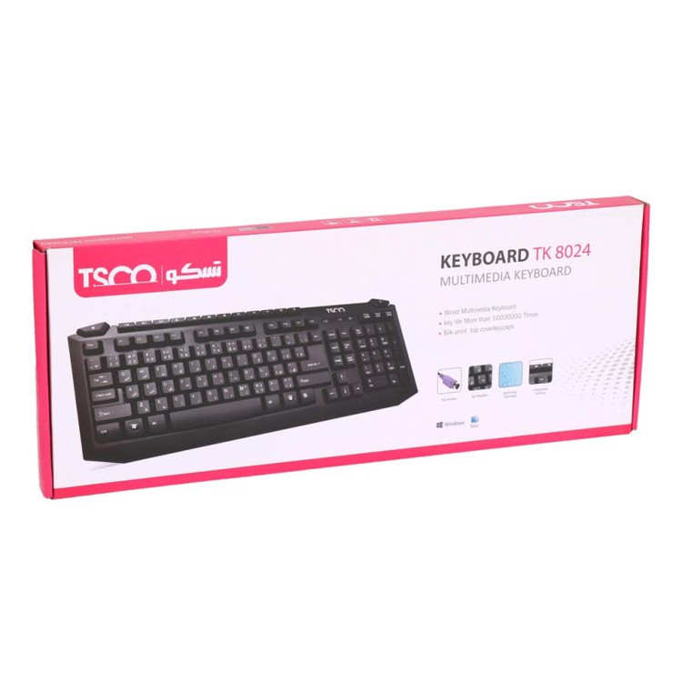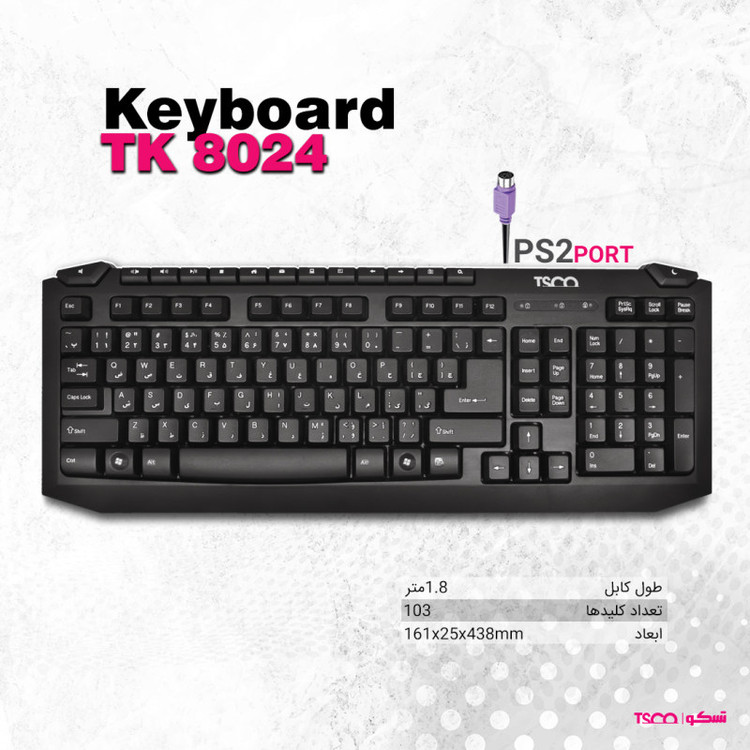 کیبورد تسکو TK 8024 یک کیبورد باسیم است که با کانکتور PS2 به سیستم شما متصل میشود.