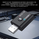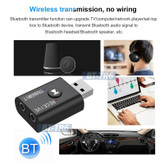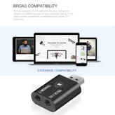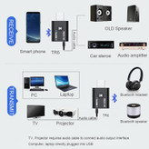 ارسال کننده و دریافت کننده صدا از طریق بلوتوث که دو کار ارسال و دریافت صدا را بصورت جدا از طریق دو پورت ورودی و خروجی جداگانه انجام می شود پورت RECEIVE با رنگ چراغ قرمز دستگاه در حالت دریافت صدا می باشد و پورت TRANSMIT با رنگ چراغ آبی دستگاه در حالت ارسال کننده صدا می باشد. این مدل دانگل برای اتصال انواع ایرپاد هدست های بلوتوثی و اسپیکر و انواع دستگاههای صوتی بلوتوثی... به کامپیوترهای خانگی و لب تاب های فاقد بلوتوث را دارد و در حالت استفاده از کامپیوترهای خانگی و لب تاب ها نیاز به استفاده از پورت های دستگاه نیست و صدا از طریق USB دریافت و از طریق بلوتوث به دستگاه بلوتوثی مورد نظر شما ارسال می شود. یکی از کاربردهای مهم دیگر این دستگاه اتصال به انواع تلویزیون های فاقد بلوتوث می باشد که در این حالت دانگل به USB تلویزیون برای اتصال منبع تغذیه دانگل می باشد و کابل AUX موجود در بسته بندی دانگل را به پورت TRANSMIT وصل کنید. در این حالت دانگل در وضعیت ارسال صدای تلویزیون به دستگاه بلوتوثی مورد نظر شما می باشد.